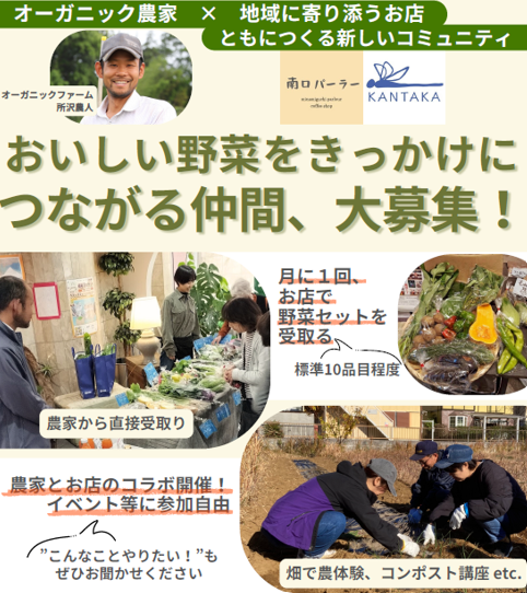 「農でつながるコミュニティー作り」をテーマに、地域に寄り添う所沢市内2店舗と一緒に活動を行います。